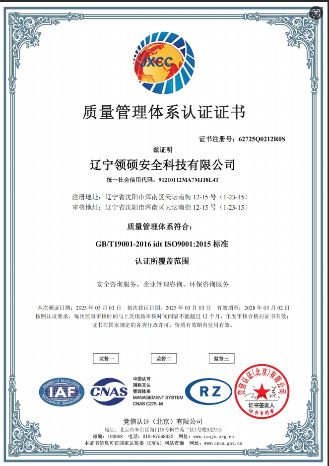 遼寧領(lǐng)碩安全科技有限公司位于遼寧省沈陽(yáng)市渾南區(qū)天壇南街12-15號(hào),注冊(cè)資金300萬(wàn)。主要經(jīng)營(yíng)范圍為遼寧省范圍內(nèi)的安全環(huán)保咨詢,生產(chǎn)安全事故應(yīng)急預(yù)案技術(shù)服務(wù)、企業(yè)雙重預(yù)防機(jī)制建立、履職能力評(píng)估、企業(yè)科研項(xiàng)目安全部分服務(wù)等的技術(shù)服務(wù)機(jī)構(gòu)。現(xiàn)有員工12人,其中包括5名遼寧省級(jí)安全生產(chǎn)專家。成立于2022年4月18日,在盤錦市成立至今已經(jīng)為30余家企業(yè)提供了安全環(huán)保技術(shù)咨詢。 業(yè)務(wù)范圍包括:技術(shù)服務(wù)、技術(shù)開(kāi)發(fā)、技術(shù)咨詢、技術(shù)交流、技術(shù)轉(zhuǎn)讓、技術(shù)推廣,安全咨詢服務(wù),環(huán)保咨詢服務(wù),標(biāo)準(zhǔn)化服務(wù),企業(yè)管理咨詢,科技中介服務(wù),工程管理服務(wù),特種作業(yè)...查看更多